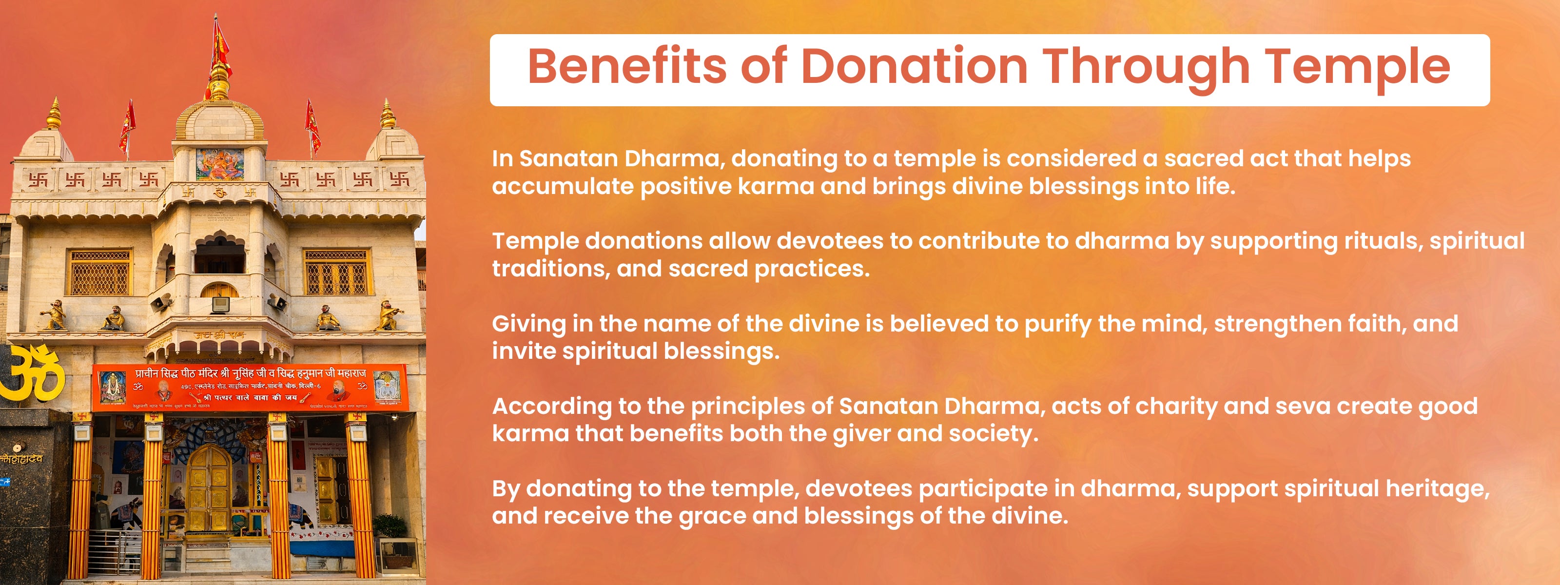 All donations are allocated to the selected seva, and a confirmation along with an official receipt is shared after completion.
